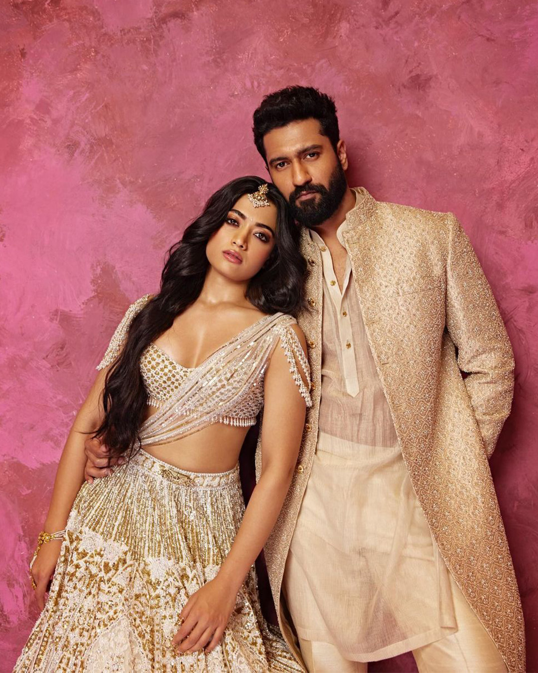 This creation worn by the celebrated actress looks straight out of a fairytale. The beige-based mocha lehenga is the perfect fusion of traditional and contemporary design. The heavily embroidered lehenga is replete with crystals, stones, sequins and beads creating an enchanting architectural pattern. The focal point of the lehenga though has to be the corset-style blouse with matching tassels.