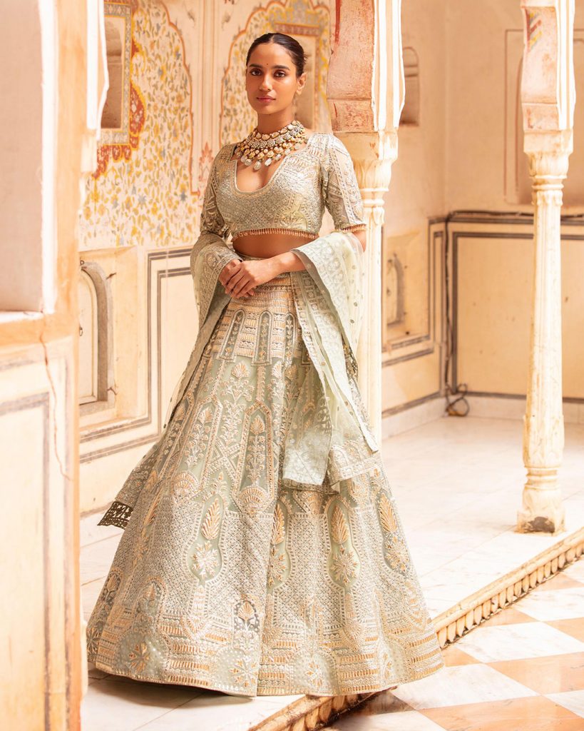 But how do you find a suitable lehenga to match the occasion and a silhouette that will add a flattering flair to your look? The lehenga market is a sea, and finding the perfect lehenga for yourself may seem like a mammoth task. To make things a tad bit easier for you, here is a detailed guide to segregate some popular lehenga options based on occasions and silhouettes. Read along to learn about different types of lehengas based on occasions and silhouettes.